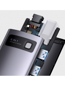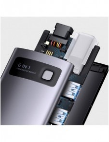 Baseus Metal Gleam Series 6 in 1 USB Type C HUB dockningsstation - 3 x USB 3.2 Gen. 1 / 1 x Strömförsörjning / 1 x SD-kortläsare