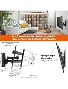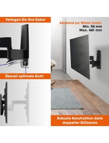 Vrid, luta och dra ut: det flexibla WALL 3250 Smart TV-fästet möjliggör praktisk lutning på 15° (nedtill), en vridning på upp till 120° (vänster och höger) och en förlängning på 46 cm.