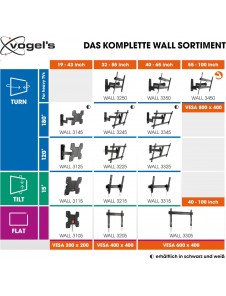 Pålitligt väggfäste: Vogel's Wall 3250 TV-fästet för väggen håller platt-TV-apparater upp till en vikt på 35 kg säkert och stabilt - för en oförglömligt flexibel TV-upplevelse.