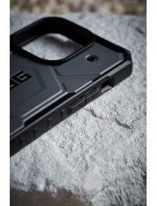 Med ett ultralätt pansarskal, en stöttålig ram och en kärna med sexkantsmönster ger det förbättrat fall- och stötskydd för att hålla din enhet säker i alla situationer. Den förbättrade upphöjda skärmkanten säkerställer att din skärm förblir skyddad från oavsiktliga fall och stötar, medan TPU-stötfångarna ger extra hörnskydd. Med den kraftfulla inbyggda magnetmodulen låses din enhet säkert på plats, vilket garanterar sömlös MagSafe-laddningskompatibilitet. Detta är den ultimata skyddande följeslagaren som kombinerar robust hållbarhet och en tidlös UAG-design. Inbyggd MagSafe-modul. Kompatibel med Apple Pay Fjäderlätt kompositkonstruktion. Överdimensionerade taktila knappar Förbättrat hörnskydd. Integrerade fästpunkter för snoddar och kompatibilitet med snoddkort (snodd ingår ej) Fallskydd på 5,4 meter (5,4 meter)
