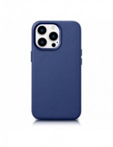 iCarer Case Läderfodral Äkta läderfodral för iPhone 14 Pro Max blå (WMI14220708-BU) (MagSafe-kompatibel)
