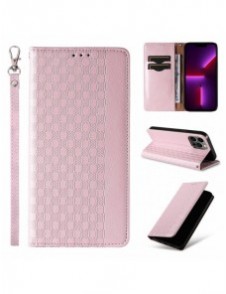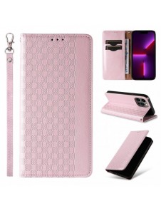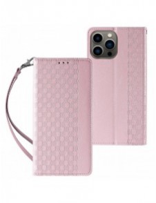 Magnet Strap Case Fodral För iPhone 14 Pro Max Flip Wallet Mini Lanyard Stand Rosa
