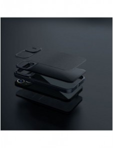 Nillkin Qin Cloth Pro Case har ett mycket elegant, klassiskt utseende. Skal med flik förhindrar repor och smuts på din telefon, det är också ett alternativ till en klassisk plånbok. Den har ett rörligt linsskydd som skyddar både kameran och din integritet. Exakta urtag för laddningsporten, högtalarna eller knapparna möjliggör problemfri användning.