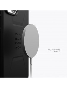 Kompatibel med Magsafe Charging: kraftfull inbyggd magnetmodul låses på plats för MagSafe-laddningskompatibilitet. Kompatibel med Apple Pay. Förbättrad funktionalitet Ett draggrepp lindas runt omkretsen för enkel hantering. Ultraresponsiva, överdimensionerade, taktila knappar säkerställer en skarp, ren klickkänsla - inbyggda fästpunkter för snoddar och kompatibilitet med snoddkort (snodd ingår ej) för funktionalitet när du är på språng. Skärm- och kameraskydd: mjuk upphöjd skärmkant för att skydda skärmen och upphöjd kameraram för att skydda linsen. Fallskydd enligt militär standard - 6 m fallskydd (6 meter) Uppfyller militära fallteststandarder (MIL STD 810G 516.6).