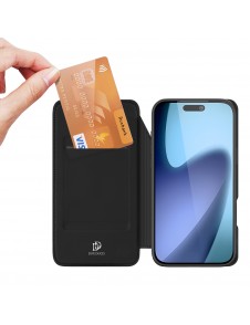 En extra kortficka möjliggör bekväm förvaring av dokument, och stativfunktionen gör det bekvämt att titta på videor och bläddra bland foton. Tack vare sin exakta passform ligger fodralet perfekt i handen och ger enkel åtkomst till portar och knappar. Gör din smartphone inte bara säker utan också snygg! Specifikation: Märke: Dux Ducis Modell: Dux Ducis Skin Pro Kompatibilitet: iPhone 17 Ytterligare funktioner: plånbok, stativ Material: TPU, PU Färg: svart De viktigaste fördelarna med Dux Ducis Skin Pro-fodralet: Elegant design och slitstarka material: Kombinationen av syntetiskt PU-läder och flexibel TPU säkerställer utmärkt utseende och hållbarhet. Praktisk kortficka: Låter dig bekvämt förvara dokument eller ett betalkort. Toppskydd: Skyddar effektivt mot repor, smuts och oavsiktliga fall. Stativfunktion: Gör det enklare att titta på film och använda telefonen utan att behöva hålla den i handen. Lätt att sätta på och ta av: Den flexibla TPU-ramen gör fodralet bekvämt att använda.