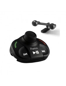 Trådlös fjärrkontroll med ratt för justering av volym och bläddring i menyer samt knappar för avspelning av ljudfiler.