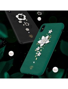 Genomskinlig design med metallisk ram och originella Swarovski-kristaller ger fodralet (och smarttelefonen) en riktigt snygg look för din iPhone XS / iPhone X från Kingxbar.