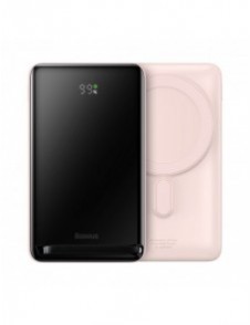 Baseus Magnetic Bracket powerbank med trådlös laddning MagSafe 10000mAh 20W Overseas Edition rosa (PPCX000204) + USB Type C-kabe