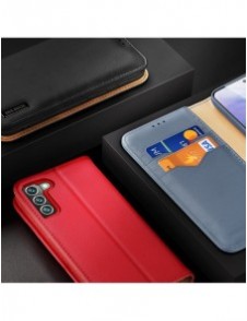 Inuti omslaget finns fickor för betalkort eller dokument, och en större ficka för sedlar. Fodralet kan användas som plånbok. Material som blockerar RFID-signalen finns under hudlagret. Detta förhindrar att pengar stjäls från ditt konto, som kan stjälas av en liten betalterminal som används av tjuvar. Säkerhet för kontaktlösa betalkort Inuti fodralet finns ett material som blockerar RFID-signalen. Tack vare detta kommer ingen att stjäla dina pengar genom att föra den dolda terminalen nära fickan eller handväskan som du bär telefonen i. Snygg design Fodralet har en elegant design som fungerar i alla situationer. Det spelar ingen roll om det blir ett affärsmöte eller ett vanligt socialt samtal. Hållbar och robust Tillbehöret är tillverkat av naturligt läder som är behagligt att ta på och stöds av en intern, stöttålig TPU-överlägg. Komplett skydd Fodralets slutna design gör telefonen perfekt skyddad från alla håll. Stativfunktion Fodralet kan vikas ihop till ett bekvämt stativ. Perfekt för att titta på film eller bläddra i bilder. Praktiska fickor På insidan av den magnetiskt stängda fliken finns praktiska fickor för kreditkort, ID-kort eller sedlar. Förhöjda sår Försiktigt upphöjda kanter skyddar dessutom skärmen och kameralinsen. Integrerade knappar De blockerar vägen för all smuts under överlägget. Exakta utskärningar De garanterar enkel åtkomst till alla nödvändiga portar. Ett smakfullt tillskott Utöver själva fodralet innehåller setet även en matchande nyckelring.