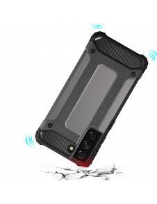 Fodralet från Hybrid Armour-serien är tillverkat av ett termoplastiskt och slitstarkt material som imiterar sandblästrad metall och kol. Skalet är anpassat till Samsung Galaxy S23 , skyddar telefonen perfekt mot skador på grund av fall eller repor (till exempel av nycklar som bärs i fickan).