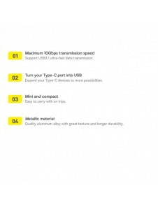 Specifikation: Märke: Baseus Typ: USB Typ C / USB 3.2 gen 1 Material: Aluminiumlegering Dataöverföringshastighet: 10Gbit/s Ingång: USB typ C Utgång: USB-A